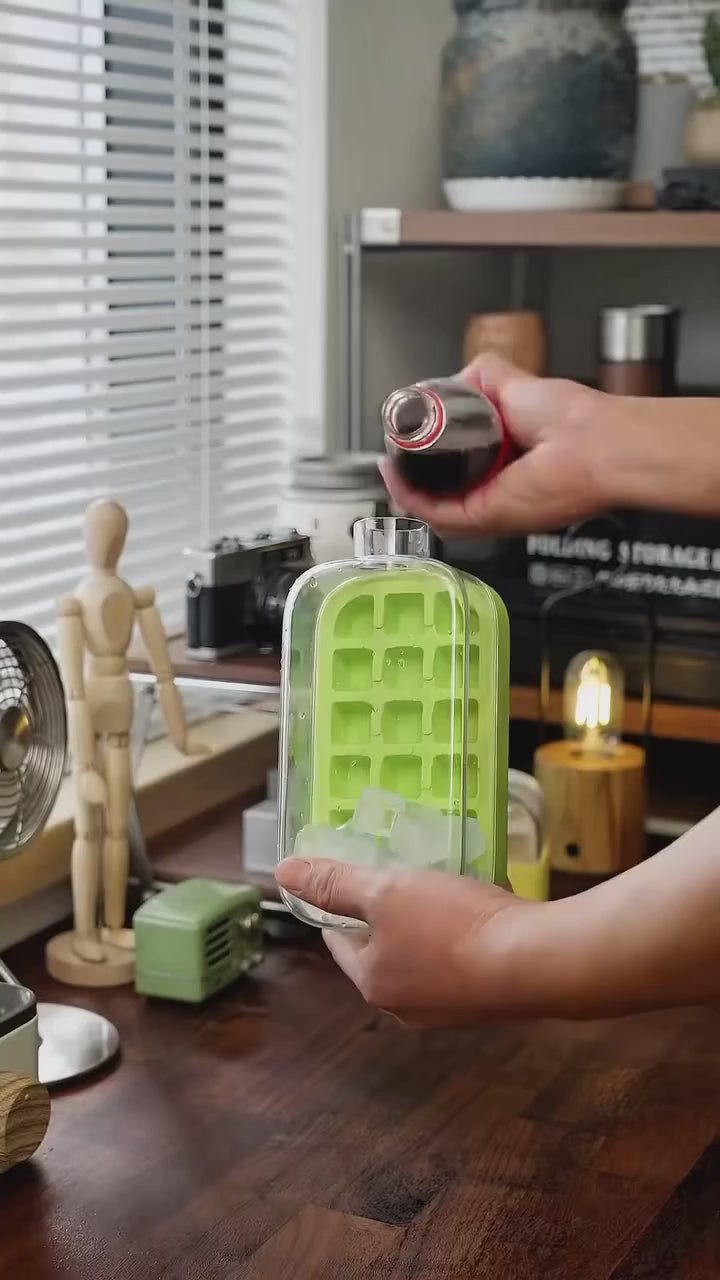 ✅ 2-in-1 Design – Ice cube maker + water bottle with straw 🥤